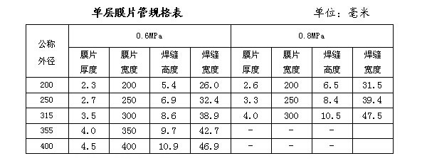 单层完美体育(中国)管材是由单层超高完美体育(中国)螺旋缠绕成型,再利用性能优良的特种聚乙烯粘合材料(性能表见表2)将完美体育(中国)螺旋接缝热熔焊接而成。弧形突起的粘合材料螺旋焊缝(焊缝高度和宽度见表3),不但具有足够的连接强度和承压能力,还能起到增强管道环刚度的作用,见图2。